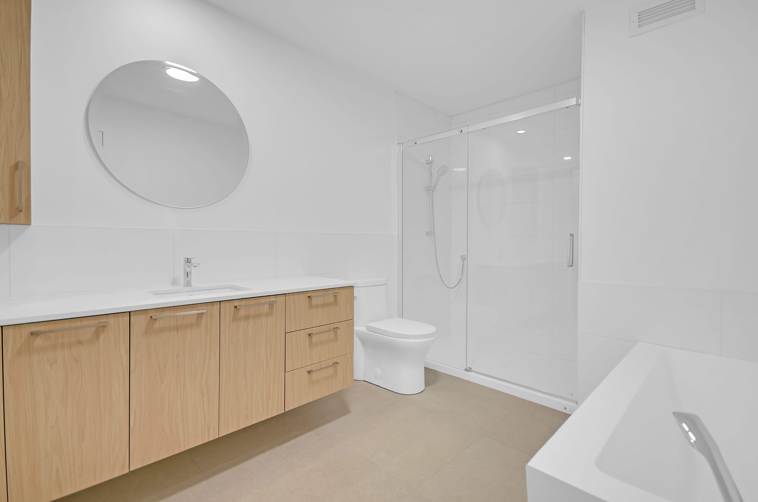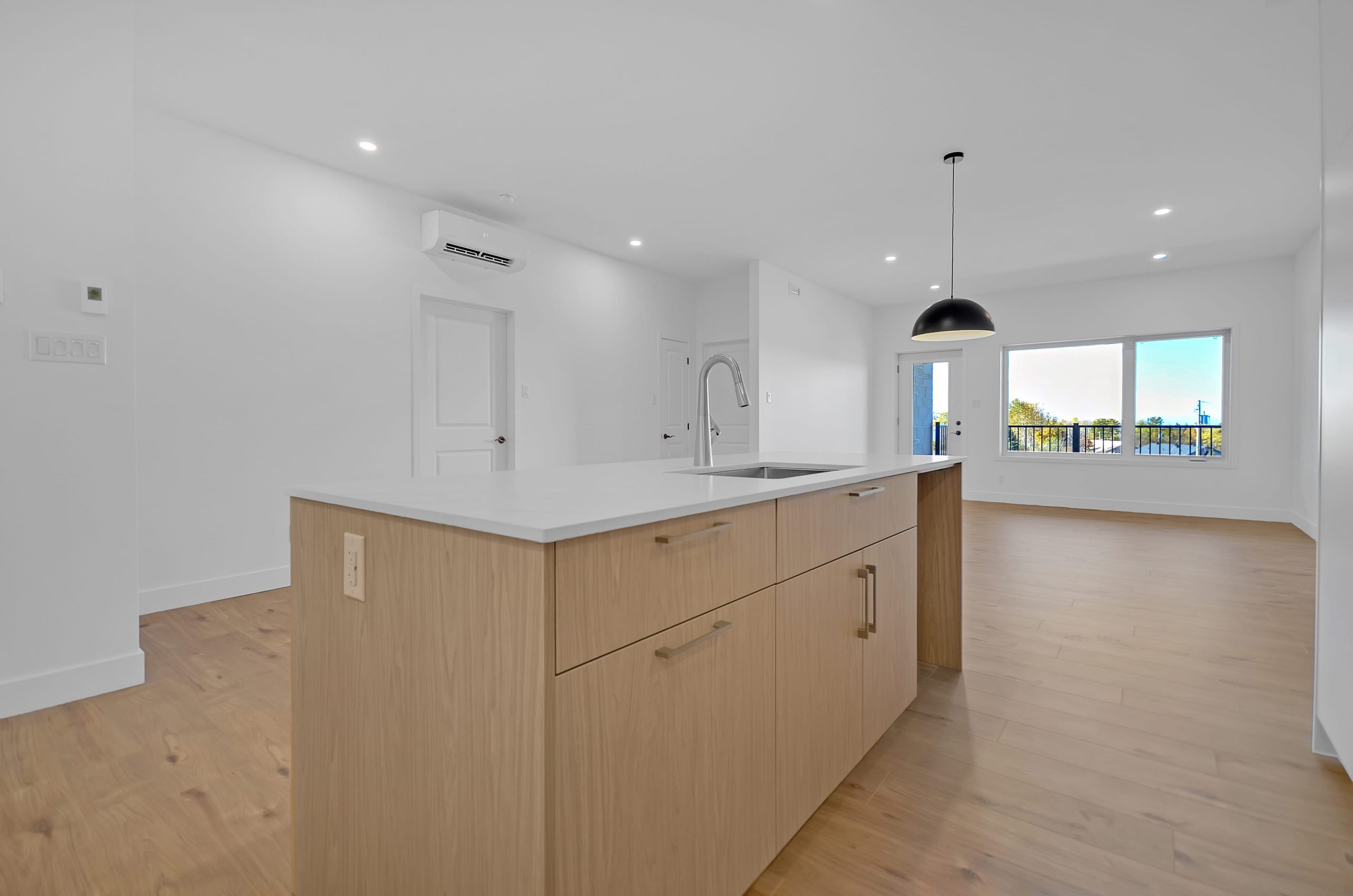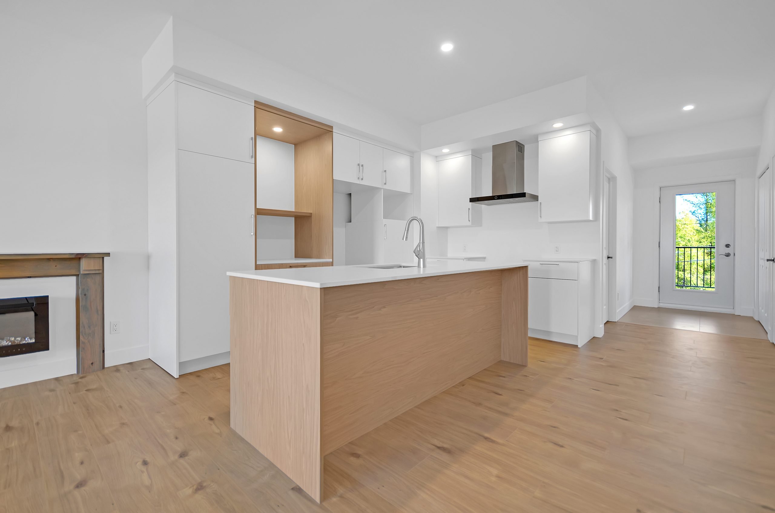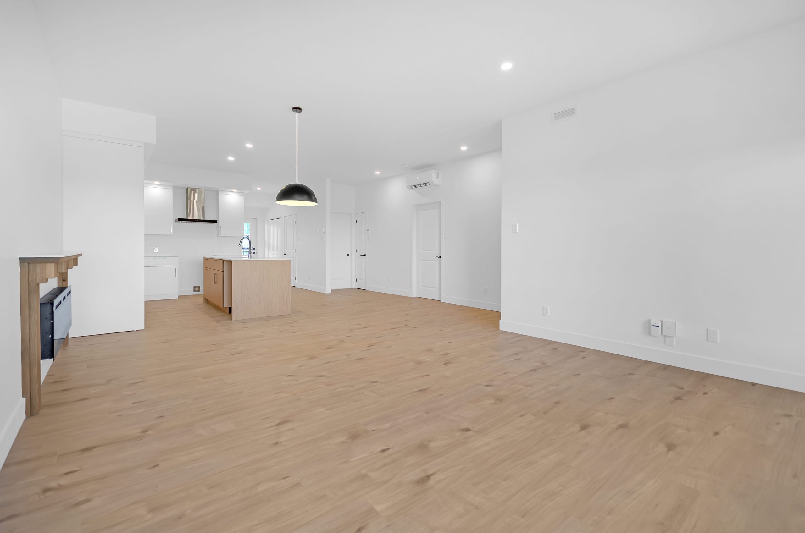 La conception à aire ouverte des espaces communs et la grande fenestration favorisent un environnement lumineux et convivial. La cuisine est un véritable atout avec une grande surface de comptoir, idéale pour cuisiner et recevoir, tandis qu’un foyer électrique complète l’ambiance chaleureuse et moderne de chaque logement.